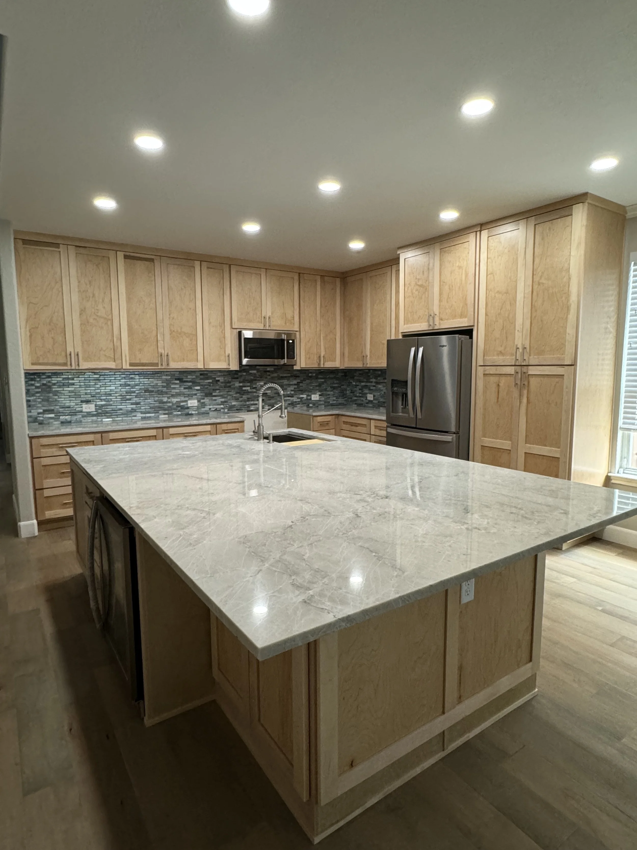 Custom Range hood with a Roman clay finish and Zagora ceramic backsplash.